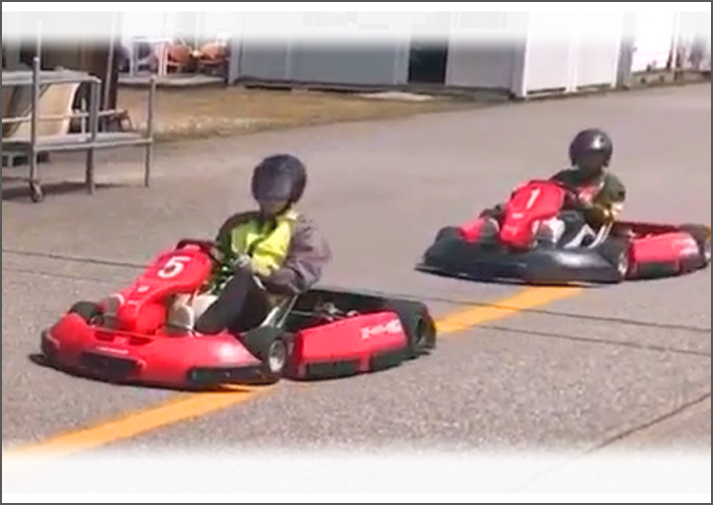 サーキットで自動車(カート)の導入部分を動画で学習。学習後はモータースポーツを楽しみながら自由に体験してみましょう。